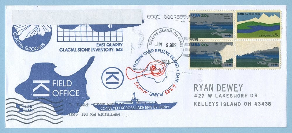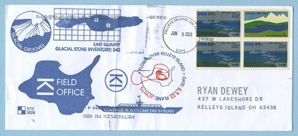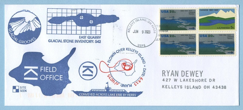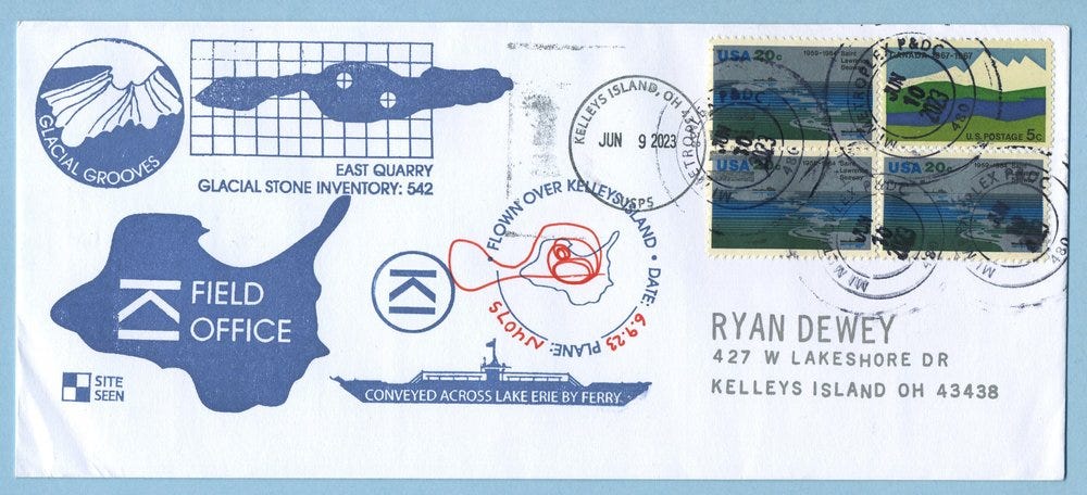 Over the past year as I’ve conducted training and research projects on Kelleys Island, I’ve begun producing a series of philatelic covers to commemorate the work.