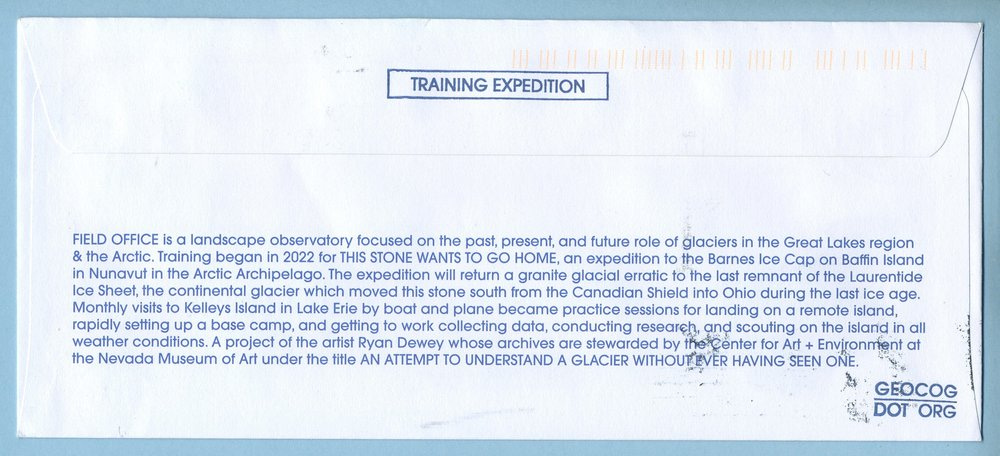 Some of these commemorative covers are available for purchase in my shop, and I’ll be presenting various covers I’ve designed at the American Philatelic Society’s convention on Saturday, August 12, at a table in the Cachetmakers Bourse at the Great American Stamp Show in Cleveland. A copy of these covers also belongs to my expedition archive at the Nevada Museum of Art.