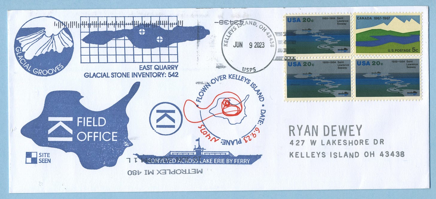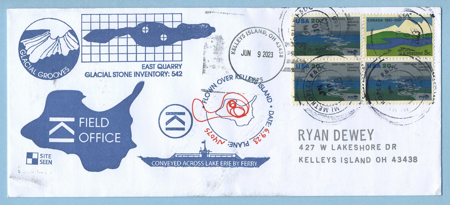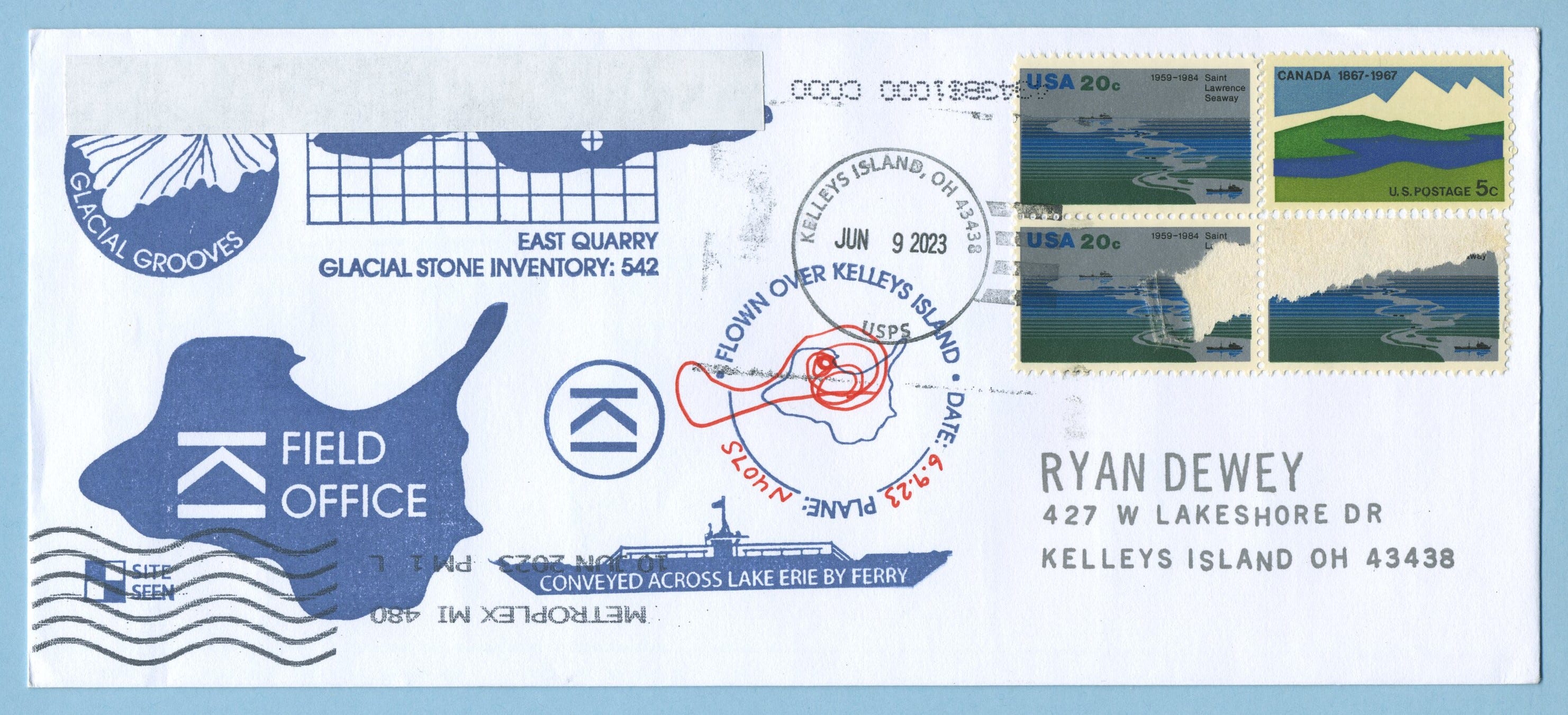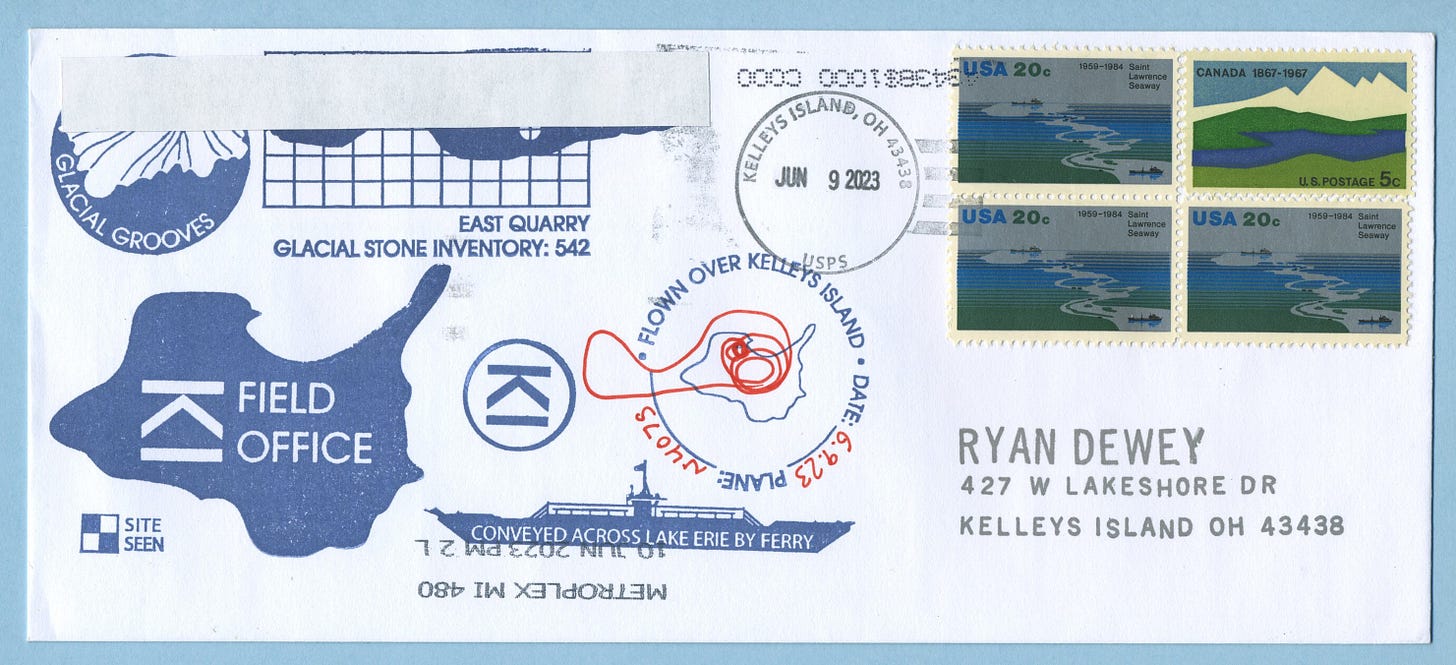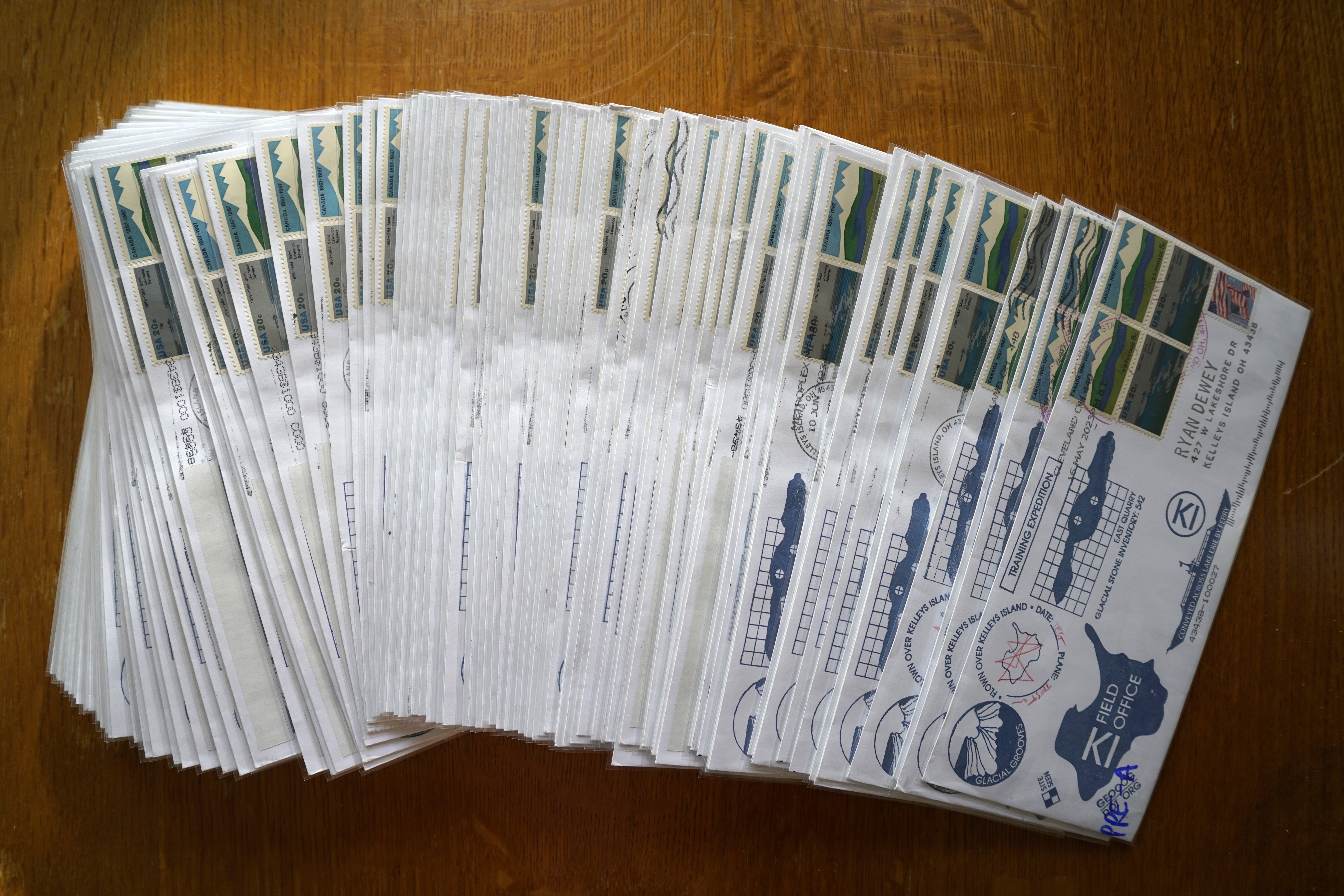 In June 2023, I produced an edition of 101 cacheted expedition covers as part of training activities for a forthcoming field project on Baffin Island. These covers were mailed to my temporary address on a Great Lakes island and processed through the USPS Area Mail Processing facility in Pontiac, Michigan. My intent was to sell them individually as records of my training activities, but I decided to keep them together because upon their delivery back to my address, the set of covers displayed extensive mishandling, including folding, scuffing, ink transfer, and misaligned cancellations, despite having been prepared in strict compliance with Chapter 2 of the Postal Operations Manual, which governs the proper handling of philatelic mail. I realized these covers comprised a corpus of mishandling as much as a record of my training activities.