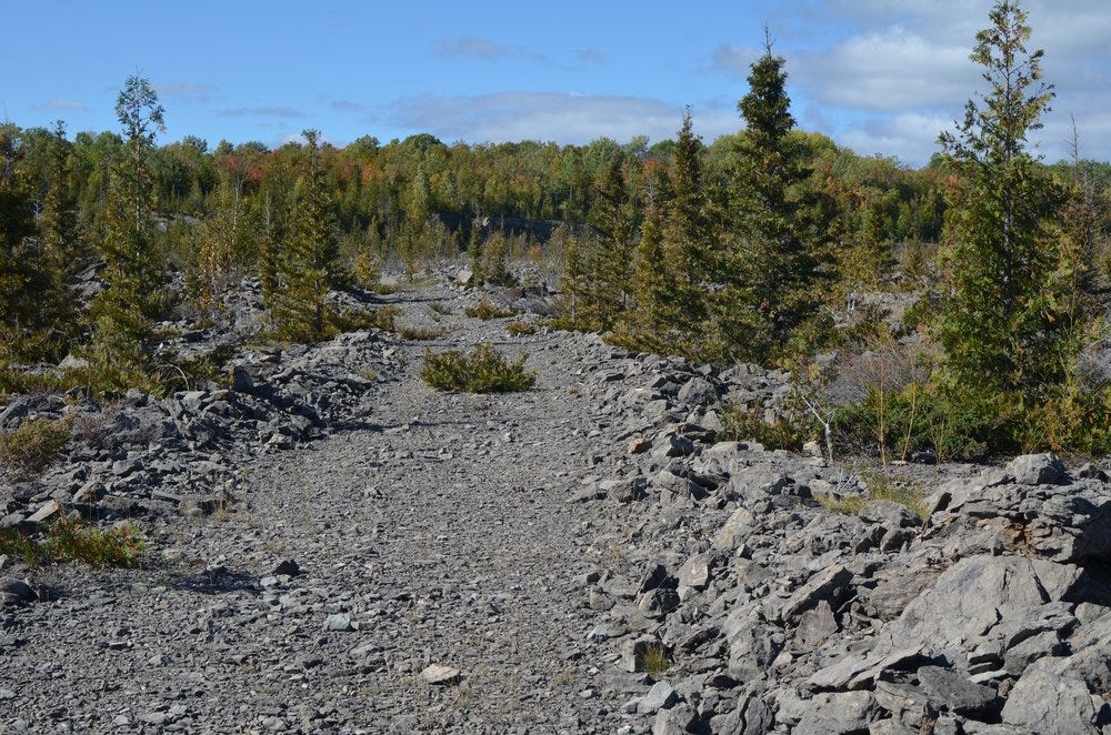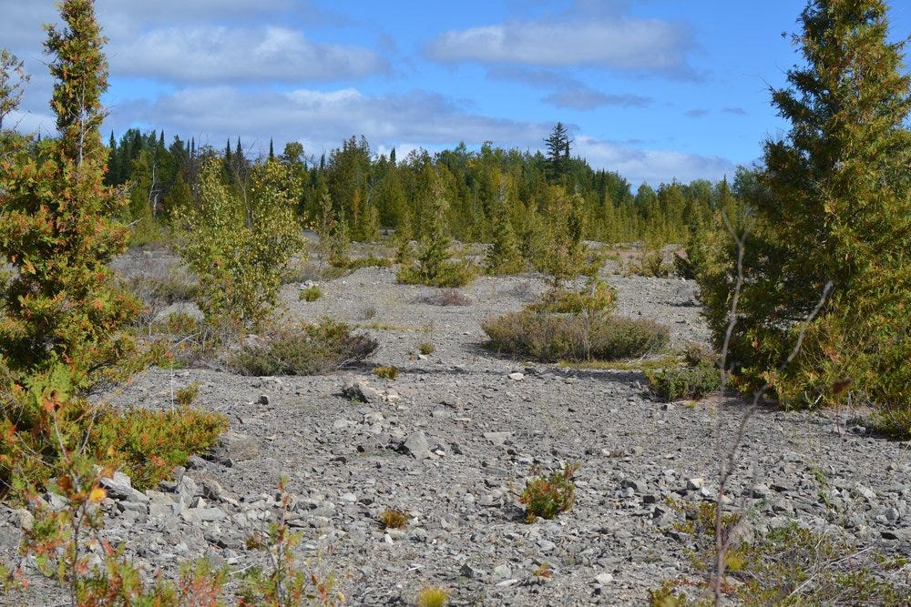 I had studied the map a little before I walked, so I had a sense of the lay of the land, but it looked a lot like the quarry I know in Ohio. Even the ground looked familiar with biotic soils, terrestrial algae, seasonal ponds, similar vegetation, remnants of rails, crushed cinders, coal, and slag. I limited my walk to an area the size of the Kelleys Island quarry so that I could get a sense of the comparative densities of granite boulders in the two quarries. The landscape was legible to me, and I started to recognize some of the decision-making strategies that I have seen on Kelleys.