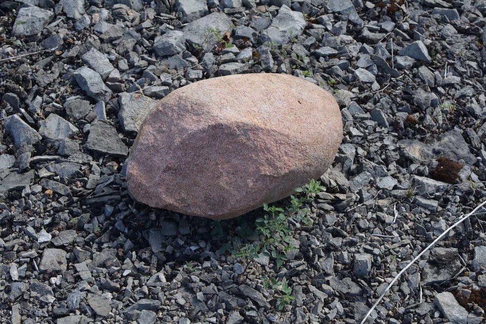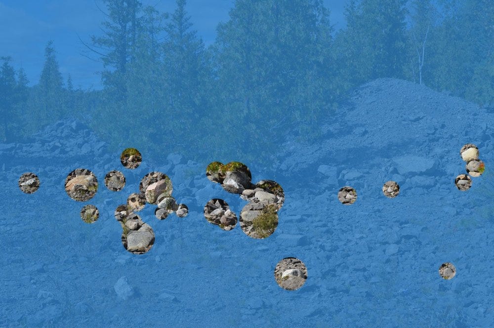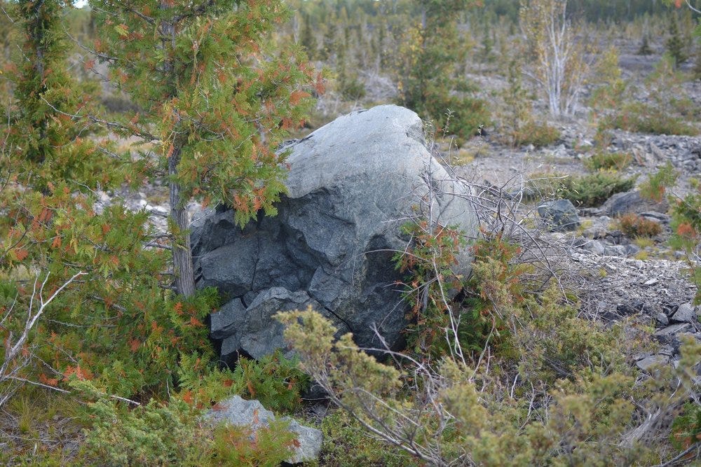 I knew that I wouldn’t have the time to map out the location of granite boulders with GPS, so instead I took a brisk walk and kept a tally of the granite I came across in the span of an hour and a half: a total of 282 glacial stones. The walk was disorienting because the terrain was very familiar in features and characteristics. It was definitely a different location, but there was something very familiar about the landscape.