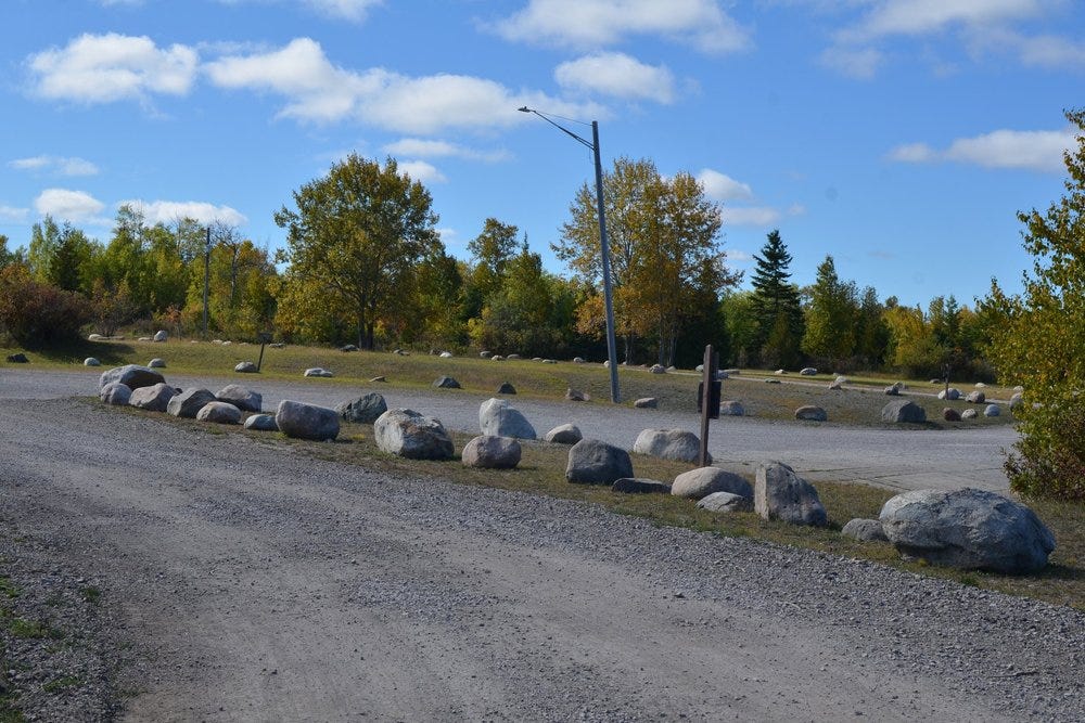 I walked out by the docks and noticed that the channels were very deep so that the freighters could dock and have enough depth to draw as they were loaded with limestone. The water was very clean and bright. I noticed several boulders on the beach and even submerged in some of the water around the docks, and I don’t know if those were dropped by the glacier, or if they were moved to the water’s edge by quarry workers. However, the road between the docks and the quarry had 193 granite erratics, each the size of a small cow, and those stones were definitely placed there by the Department of Natural Resources, or whatever agency conserves the land.