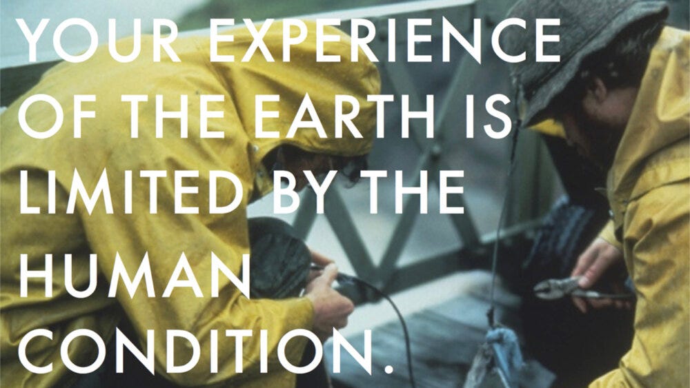 In closing, this is a poster I made for myself a long time ago. It says: Your Experience Of the Earth is Limited by the Human Condition.