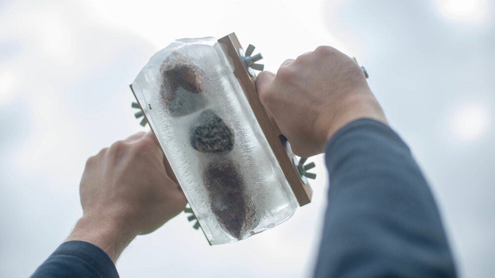 Here is one of those experiences. At the start of a recent solo exhibition about climate change and agriculture, I placed this stone next to an ice box and had participants chill their hands for 30 seconds before touching the stone. The piece is called: Remember for This Stone A Colder Past and you can find it posted (here) on my instagram page @geocog