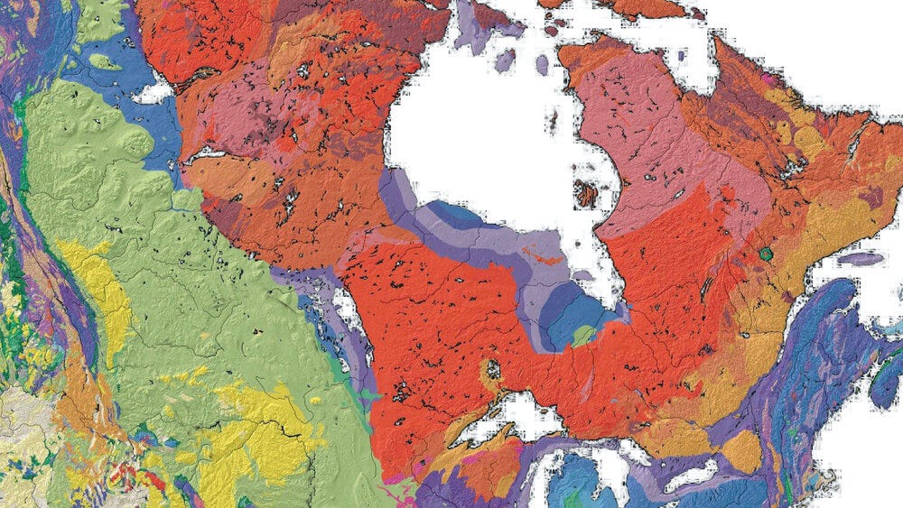 This is a geologic map of the Canadian Shield, one of the oldest rock formations to survive to our present time.