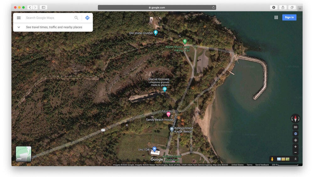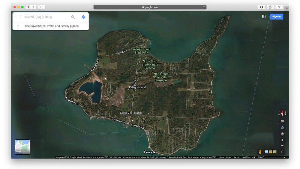 On the western end of the lake there is an island called Kelley’s Island, it looks like this: