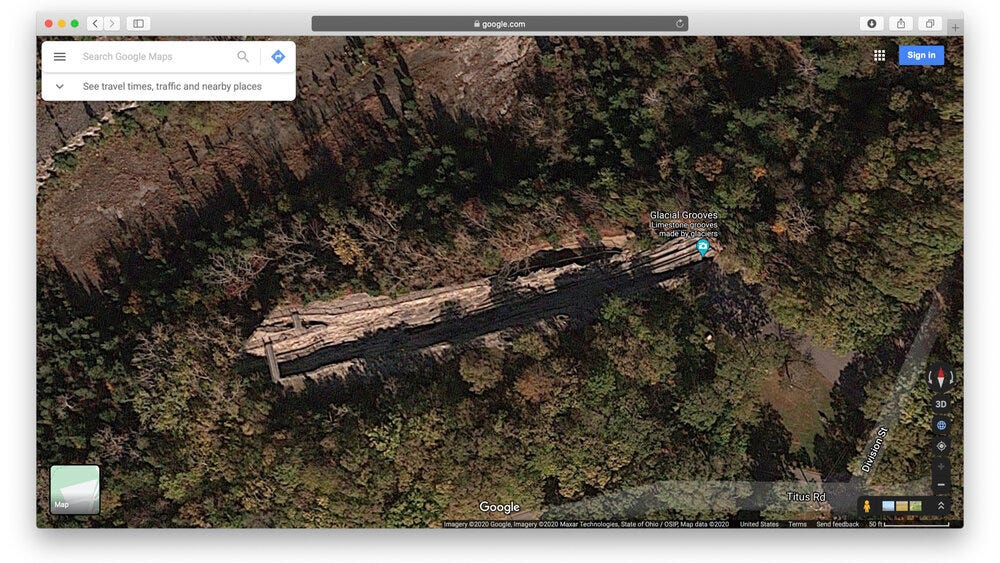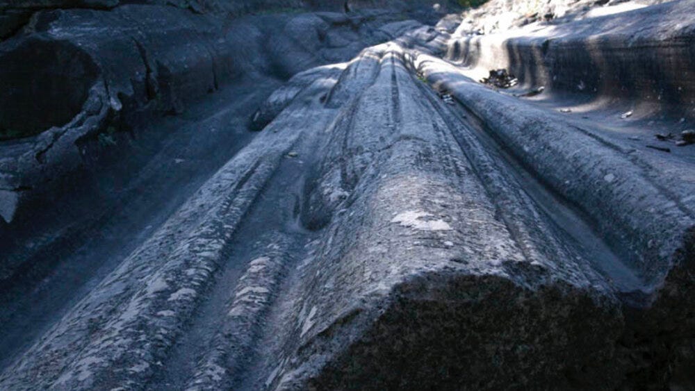 On the North end of Kelley’s Island is a set of grooves carved by Canadian granite glacial erratics under the weight of the 3200 meter thick Laurentian Ice Sheet.