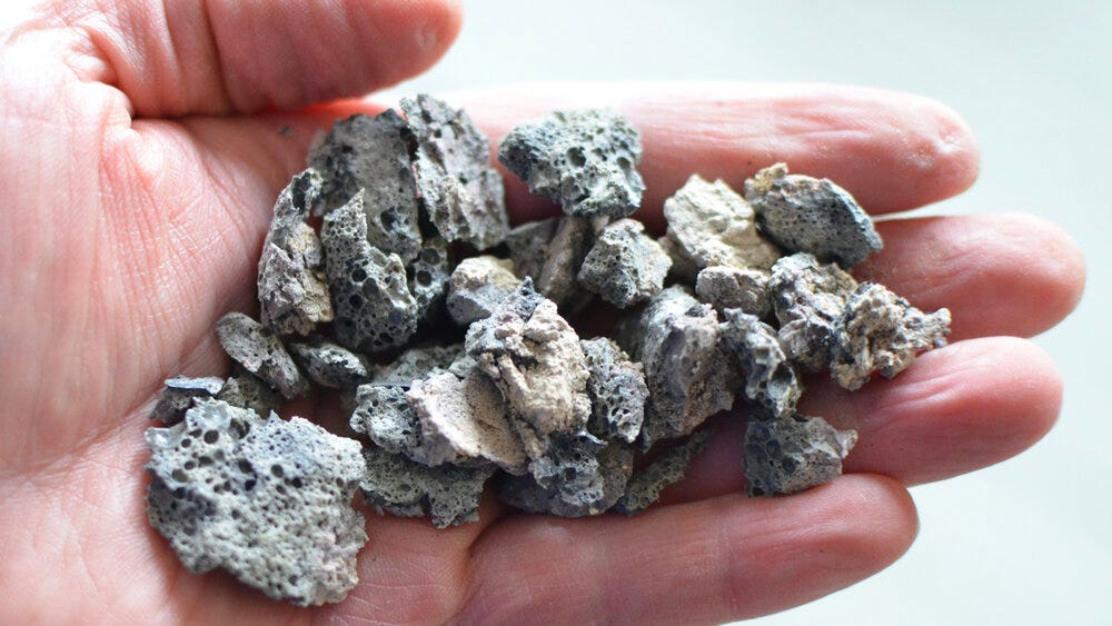 Here I have taken the granite dust from a countertop manufacturer and melted it into magma in my foundry to show how it’s practically the same as lava.