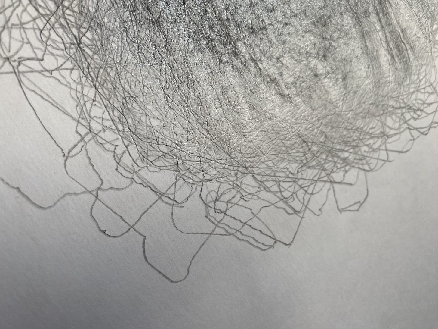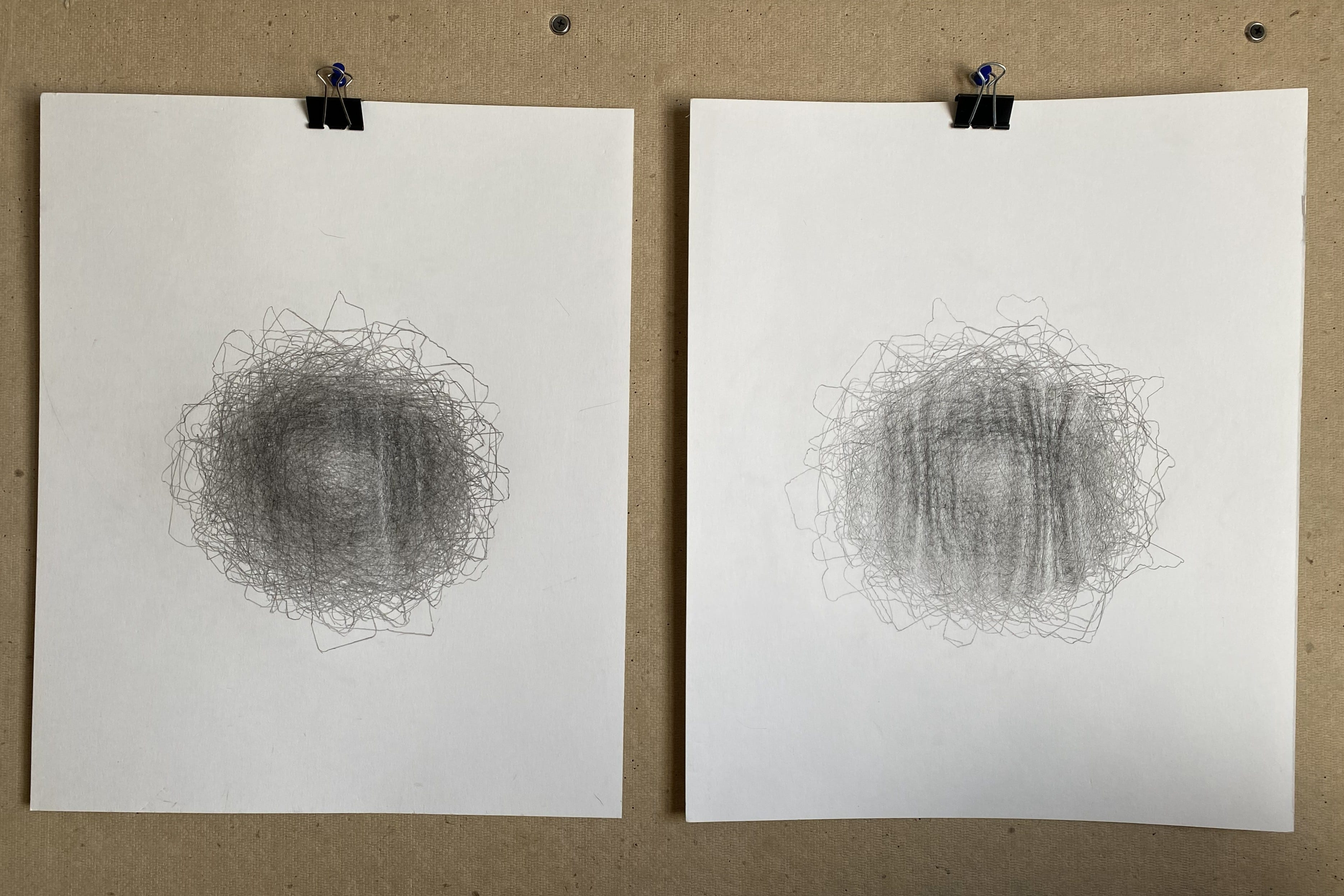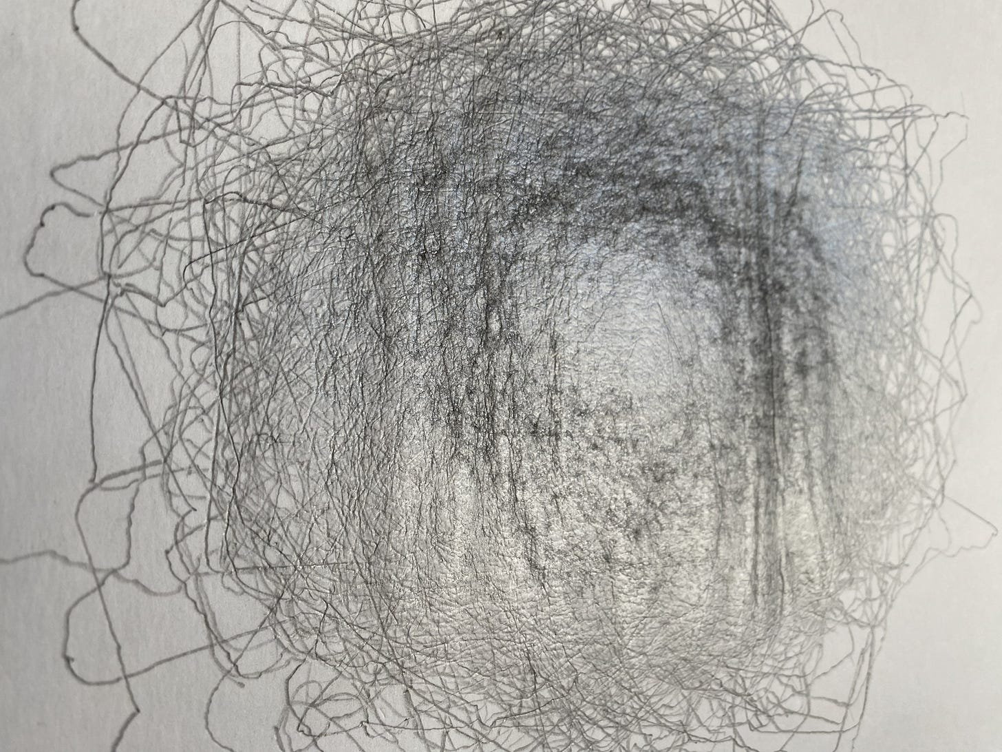 My intent was to draw a standard deviation by hand, but that’s not possible. Actually, these drawings are not statistical operations at all. They do not calculate variance, they do not measure distance from a mean. While you can inspect any particular point of the drawing and you can get a sense of how many times the pencil passed that point from value, tone, and depth, this is not reproducible, or undoable, or forensically calculable. All that these drawings reveal is where my hand returned.