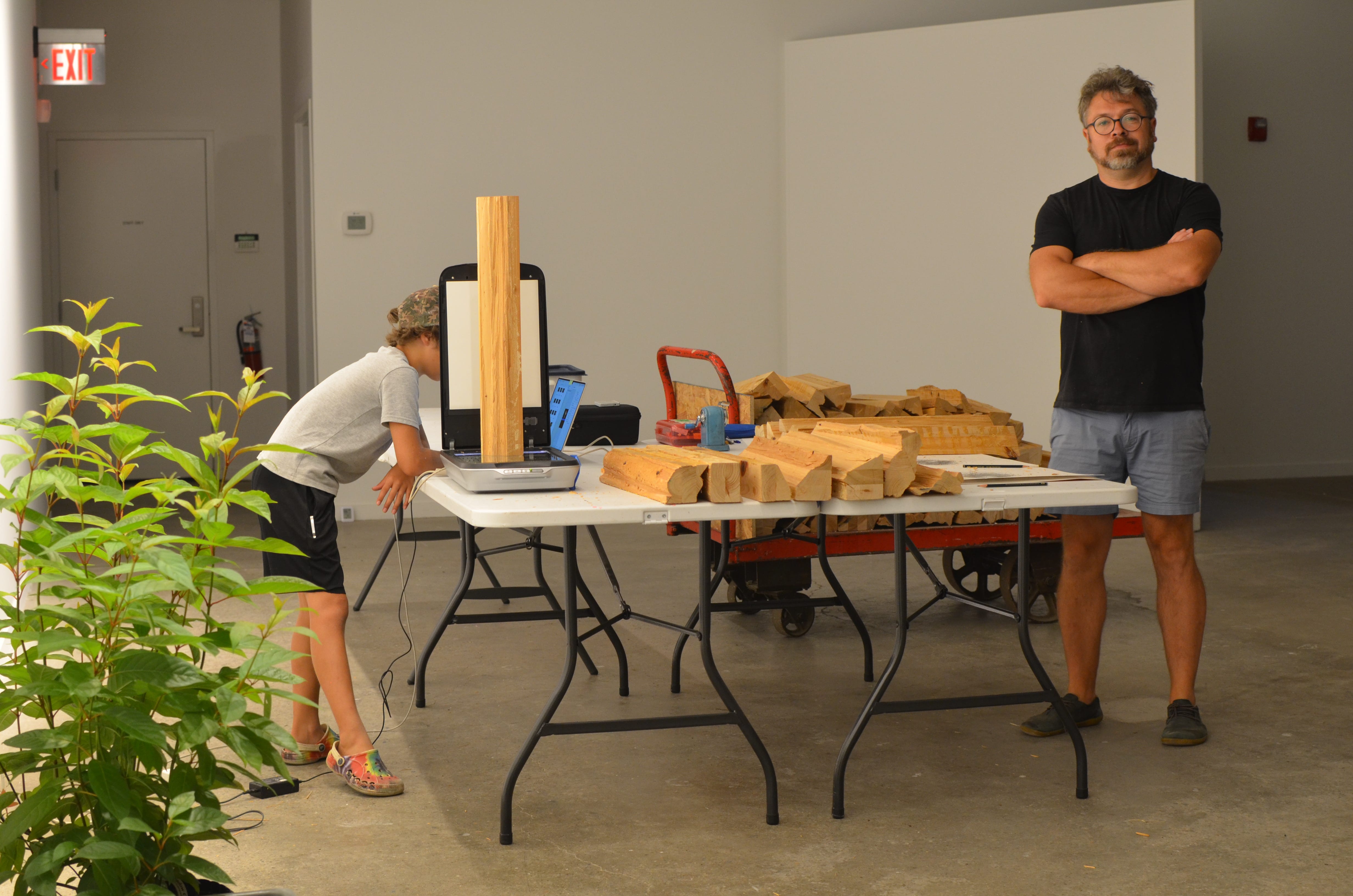 During deinstallation, my son scanned both ends of each log using a flatbed scanner. As he finished each log, I would then trace the outline by hand, stacking the contours on a single sheet. The drawing carries both gestures: one procedural and delegated, the other embodied and durational. I got two drawings from this experience which I’ll share below after I frame the significance of the comparison.