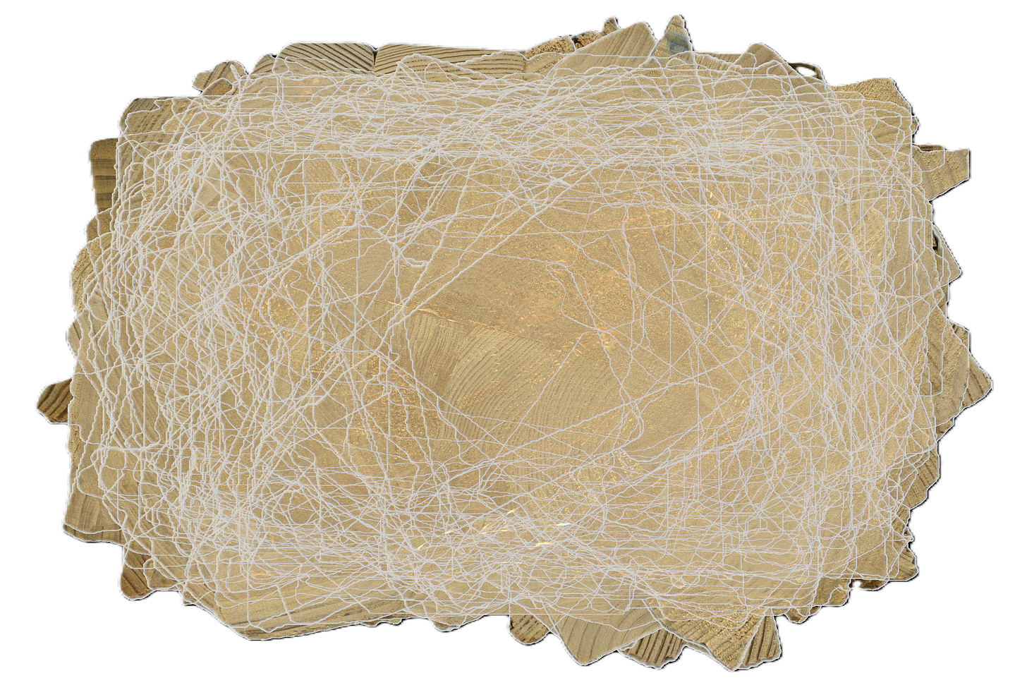 Over hundreds of repetitions, a center emerges, but not because it was computed. It emerges because that region kept being protected again and again inside the center of the nested stack. Critically, my trace drawings differ from the photographs because my traces are outlines and the photographs depict the solid object, so the drawing preserves a hollow texture in the center as a void, turning the density of the image into a taurus form.